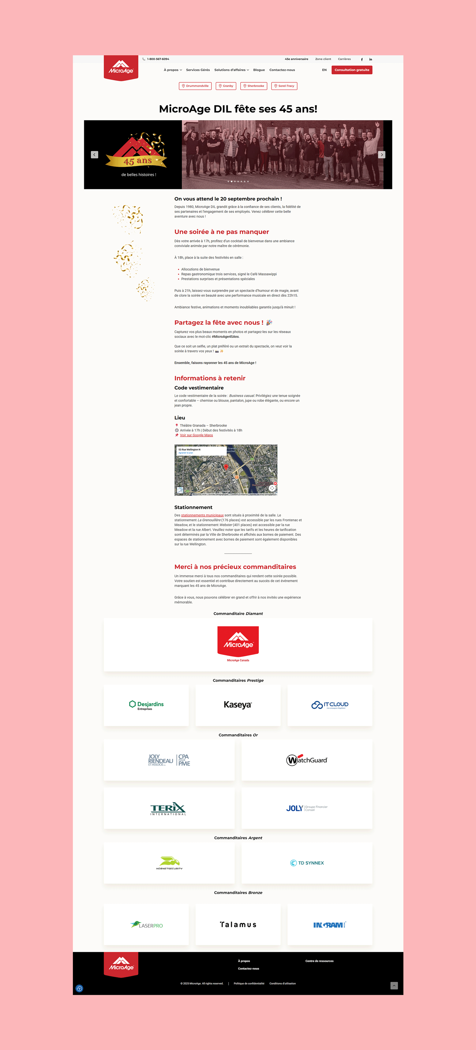 Pour célébrer ses 45 ans, MicroAge DIL voulait rassembler clients, partenaires et commanditaires autour d’un événement mémorable, tout en reflétant son sérieux, sa modernité et la qualité de ses relations d’affaires.