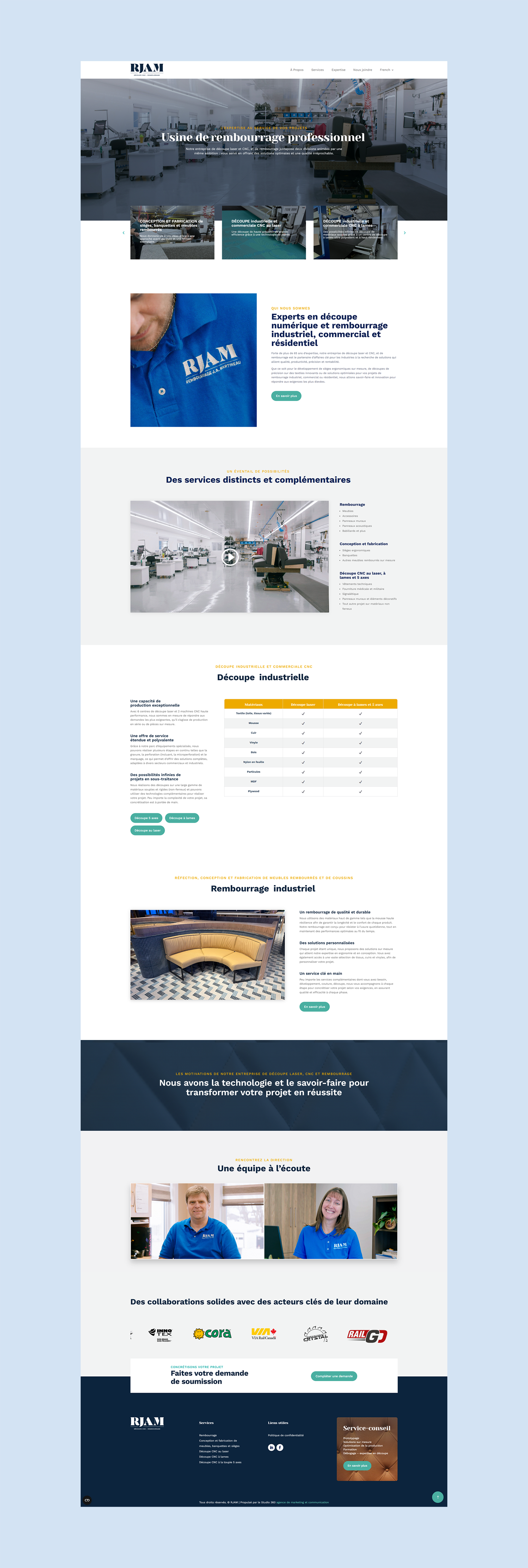 Ayant peu investi en marketing au cours de son histoire, RJAM nous a d’abord mandaté pour mettre de l’avant sa nouvelle division en découpe CNC, à la fois complémentaire et indépendante de celle de rembourrage. La mise en commun des 2 divisions et le déploiement d’initiatives marketing a d’abord requis l’établissement d’une stratégie.